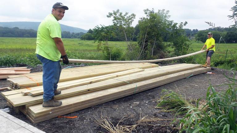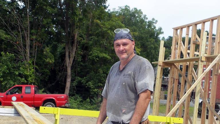 Tom Becker, a candidate for a seat on the Chester Town Board, volunteered to help raise the amphitheater.