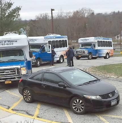 The food pantry is working in cooperation with the Town of Monroe Dial-a-Bus who is supplying it with six buses and drivers to deliver the food to those on the food pantry’s list.