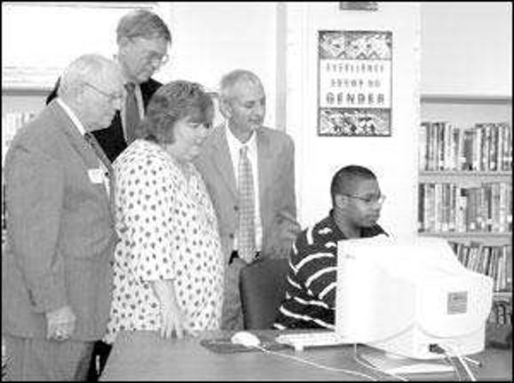 Central Valley - In just the last week, Monroe-Woodbury High School Principal Aldo Filippone said the education about solar power he’s gotten from state Power Authority representatives was like a light bulb going off in his head. “I truly learned a lot more about those funny things that are sitting outside my window on the roof of the school,” he said. “I learned that I should probably have them installed in my house. I learned that they could provide the electric power to run my computer, lights, the stove.” Filippone and acting Superintendent of Schools John Canzoneri hosted state Sen. William J. Larkin Jr. and Power Authority President and Chief Executive Eugene Zeltmann for a presentation at the school this week. Zeltmann said solar power fits in well with state goals of cleaning air, supporting new jobs, fostering broader acceptance of the technology and hoping to lower the cost, thus attracting more activity within the state. Zeltmann said the power authority has had a hand in 20 separate solar power units in the state. The units in the Monroe school will generate about 8,000 kilowatt hours a year, about two percent of the school’s electricity, he said. Zeltmann also pointed to other energy saving initiatives the Power Authority has been working with the school on, such as high-efficiency lighting, energy-saving windows and energy management control systems that have resulted in electricity cost savings of nearly $228,000 a year. “We’re also working hard to bring an electric drive school bus to the school district in the not-too-distant future,” Zeltmann added. “We’re at a point in the evolution of this technology to take it to the next step, of creating a mass market for such technologies, said Zeltmann. “As long as demand remains small, production of solar power will be a niche business and its cost high. But once significant demand materializes, economies of mass production can be put into place, the price will fall and demand will soar.” The six kilowatt roof-mounted system, an array of 40 separate photovoltaic panels, was developed through a $75,000 grant secured by Larkin. The senator said schools are the perfect place for the state to concentrate efforts because energy conservation is a great teaching tool. Students also learn how to operate a computer program that is connected to the solar panels, monitoring system use. Boze-Simpson, who is a senior class senator, said it took about five minutes to learn the program that will be used within classrooms. As he demonstrated the system, Boze-Simpson said the power monitored at the power at that time would run six ovens, 15 air conditioners, 74 computers and 248 sixty-watt light bulbs. Solar power information is available at: • www.nypa.gov (includes solar school initiatives) • www.powernaturally.org (includes state energy renewal information) • www.eere.energy.gov/RE/solar.html (national solar power programs) • www.ases.org/ (American Solar Energy Society).