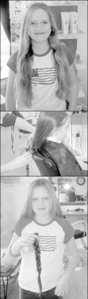 Nine-year-old Kristen Forsstrom, a student at Pine Tree Elementary in Monroe, donated 14 inches of hair to Locks of Love. The hair cutting was done at The Mane Room Hair Salon and her hair stylist was Marla Sheehan.