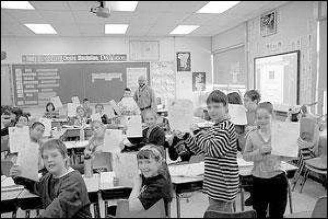 Students in Scott Brown’s 4th grade class at Central Valley Elementary, hold up the letters they have received from their pen pals in Bridget Dudzik’s 3rd grade class at Pine Tree Elementary. The students compared ideas and experiences; they will meet when they get to the Middle School.