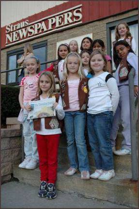 Members of Brownie Troop 351 in Monroe visited the offices of The Photo News on Nov. 3 as part of the troop’s effort to learn about newspapers and to earn their “Write Away” badges. Members of the troop are: Courtney, Julianne, Kirstie, Sima, Christy Ann, Caitlin, Spencer, Caroline, Jenna, Kristen and Meredith.