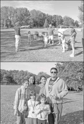 Students and their families joined the staff at Sapphire Elementary for the school’s first annual one-mile family hike around the school grounds. Above, Sapphire kindergarten teacher Tom Costa, leads families in a exercise at one of the Family Hike stations set up at each quarter-mile marker. Below, the Alifano family were amomg the 200 participants.