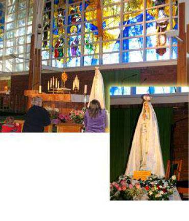 WARWICK - The world-famous International Pilgrim Statue of Our Lady of Fatima was on display at Warwick’s Church of St. Stephen, the First Martyr, last Friday and Saturday. The statue was sculpted in 1947 by Jose Thedim and is based on the description of Sister Lucia, one of the three young seers who reported apparitions of the Virgin Mary from May to October 1917, in Fatima, Portugal. The Pilgrim Statue has visited more than 100 countries including Russia and China. Sister Lucia died on Feb. 13 of this year at her Carmelite convent in Coimbra, Portugal. She was only 10 years old when she and her two young cousins, Francisco and Jacinta Marto, reported that the Virgin appeared to them on a field outside the town of Fatima. The young seers conveyed what many believe were Mary’s predictions of World War II, the rise of Communism and other events. St. Stephen’s parishioners had an opportunity to view the statue and participate in scheduled services. Many also volunteered to spend an hour or more in prayer at an all night exposition of the Blessed Sacrament.
