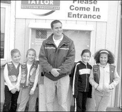 Brownie Troop 181 members Britney, Kayla, Samantha, and Briana visited Taylor Recycling Facility in Montgomery recently and learned that there is more to recycling than just paper and plastic. Steven Neuhaus escorted the Brownies around the facility.