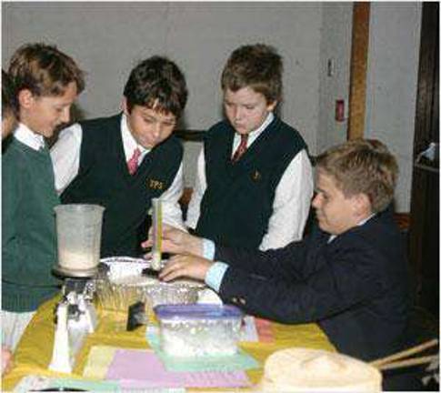 Tuxedo Park — While celebrating the metric system might not sound like an activity to which children would flock, students at Tuxedo Park School couldn’t wait to travel to nine different countries during their recent celebration of “Metrics Around the World.” Mathematics chair Jennifer Rising worked with the school’s foreign language teachers to help the ninth grade students create activities related to different countries, that younger students completed using metric measurements. For example, after snacking on tortilla chips and salsa in Mexico and hearing a presentation in Spanish and English about the country, students were challenged to find the weight in kilograms of a Mayan temple, based upon weighing a smaller block and forming ratios to estimate the weight. Students visiting Vietnam measured rice in grams both before and after it was cooked, to determine how much water was absorbed. Later they visited Ecuador to determine the number of Alpaca needed to produce enough wool to fill cubic liters, traveled to France to estimate distances between cities in kilometers, and read train schedules to find travel times, and enjoyed determining how fast a man must run (in meters per second) to outrun the bulls in Pamploma, Spain. As they traveled to each country and completed the tasks, the ninth grade ambassadors stamped each student’s passport with a sticker from their country. When they completed their travels, students had souvenirs from their experience. Correct answers were tallied from each grade level to determine the event’s winners. “‘Metrics Around the World’ was a hands-on way to teach our students about the metric system and learn about other countries’ cultures,” said Rising. “Since the United States is only one of three nations that has not officially adopted the metric system, we need to immerse our students in this international system of measurement, as they will be using metric measurements in business and education more than any previous generation.” Founded in 1900, Tuxedo Park School is one of the oldest schools in the country specializing in pre-secondary school education. Located on Mountain Farm Road in Tuxedo Park, the school educates children from grades pre-kindergarden through nine, and serves families living in Bergen and Passaic counties in New Jersey, and Orange and Rockland counties in New York. The school is accredited by the New York State Association of Independent Schools. For more information, call 351-4737 or visit www.tuxedoparkschool.com.