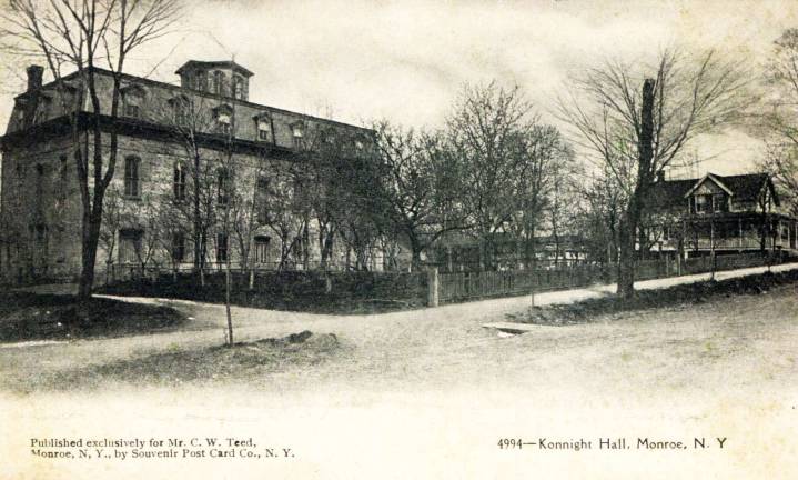 The main location for the early viewing of films in Monroe was Konnight Hall, later to be called the Monroe Opera House. The Monroe Opera house was located on North Main St., now the site of the senior citizen apartments. It was purchased in the early 1920’s by a group of local citizens and became the center of community activities. It was renamed the Monroe Community House, and used for many years by most local groups. Plays were performed there; Boy Scouts, the Civil Air Patrol and other groups met in the building.